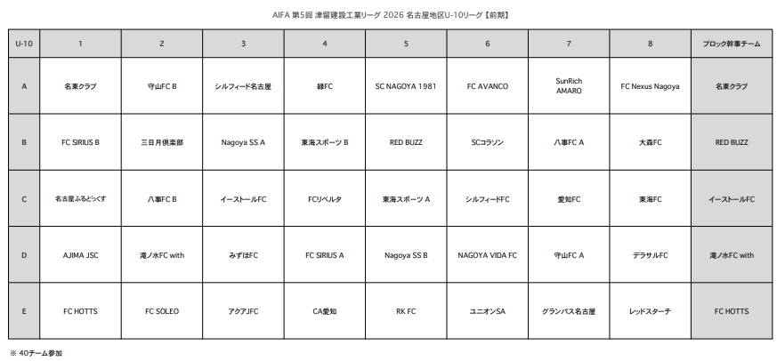 AIFA 第5回津留建設リーグ2026 名古屋地区大会U-10