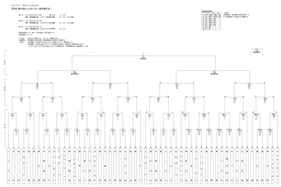 2026年度 クーバー・カップ 第9回香川県U-11サッカー選手権大会 5/3,4,5開催!トーナメント組合せ掲載