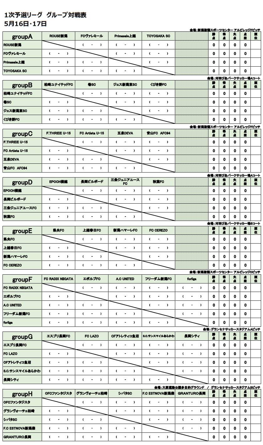 OFCファンタジスタ、グランヴォーチェ柏崎、 シバタSC、F.C ESTNOVA新潟燕、GRANTURO長岡