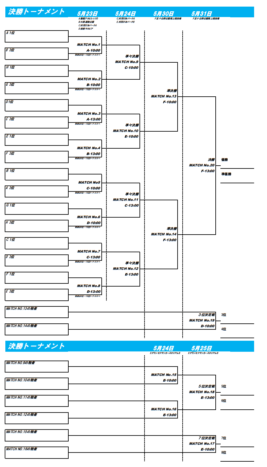 2 各グループの1位·2位チームの16チームを決勝トーナメントに進出させる。