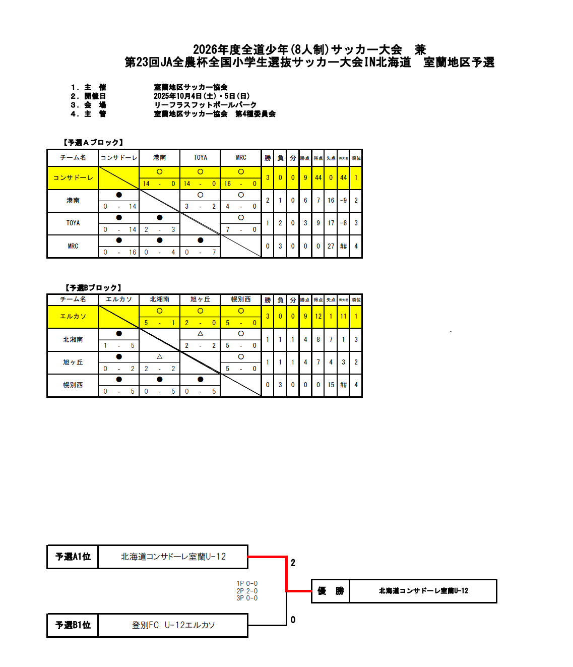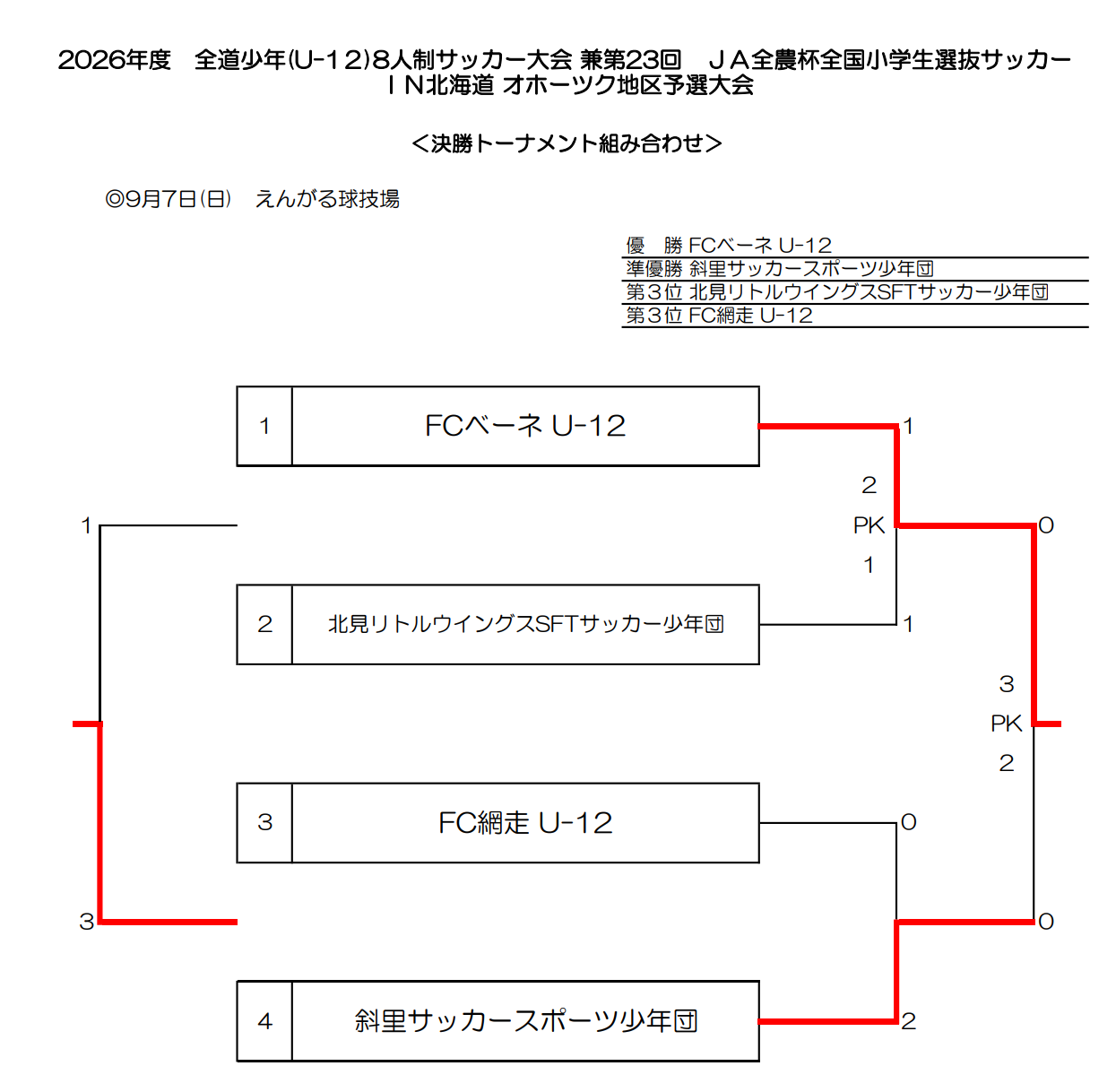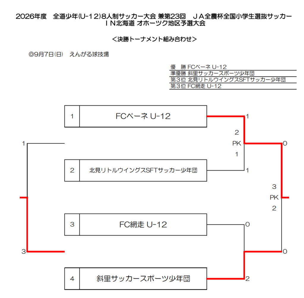 ※優勝チームは2026年5月3日(日)~5日(火祝)に横浜で開催される予定の全国決勝大会(JA全農杯全国小学生選抜サッカー2026)への参加を義務付ける。