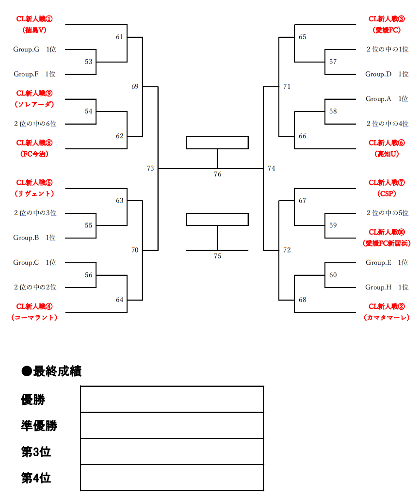 第3位、4位、5位のチームには、JCYインターシティカップ(U-15)WESTへの出場権が与えられる。