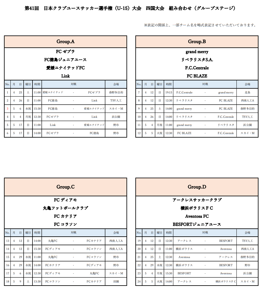 第41回日本クラブユースサッカー選手権(U-15)大会 四国大会