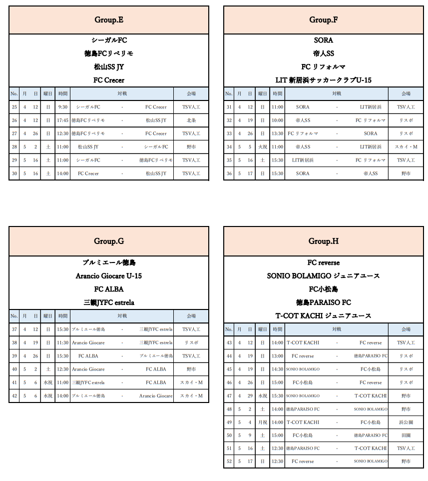 シーガルFC、徳島FCリベリモ、松山SS JY、FC Crecer