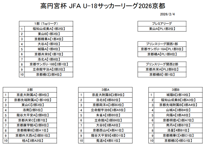 高円宮杯U-18サッカーリーグ2026京都