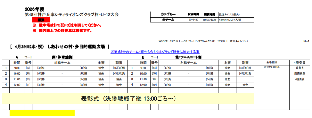※(注1) 県大会出場枠は昨年度の実績に基づき5チームを予定するが、最終確定は3月(予定)の兵庫県4種委員長会議で行われ、その内容によっては、順位決定戦が変更される場合がある