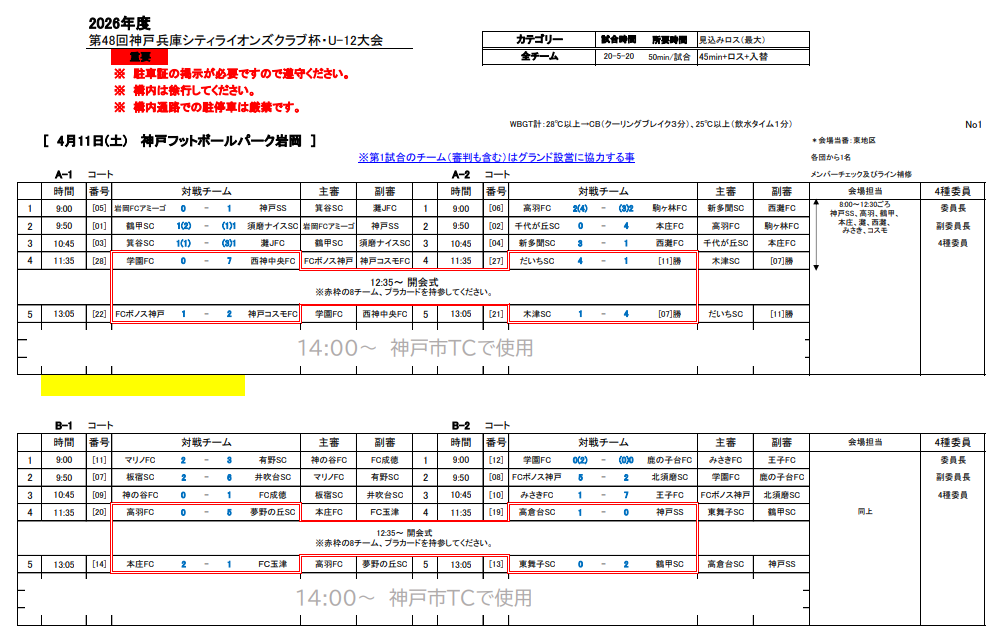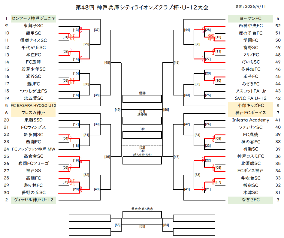 ※センアーノ神戸ジュニア、FC BASARA HYOGO U12、フレスカ神戸、ヴィッセル神戸U-12、ヨーケンFC、小部キッズFC、神戸FCボーイズ、なぎさFCは4回戦から登場