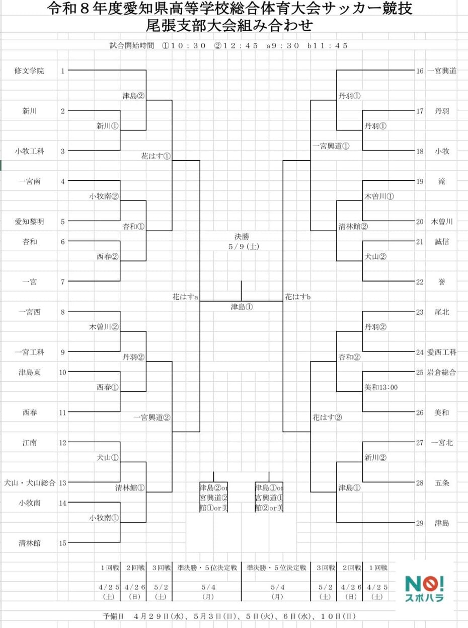 2026年度 第80回愛知県高校総体サッカー競技 インターハイ 尾張支部大会