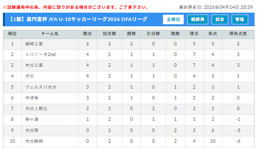 高円宮杯U-18サッカーリーグ 2026 OFAリーグ 大分