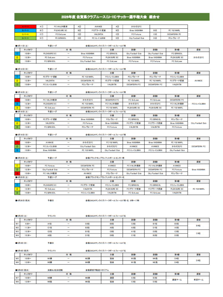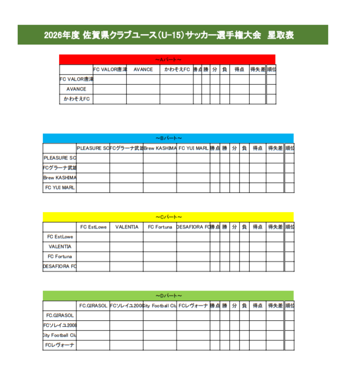2026年度 佐賀県クラブユース(U-15)サッカー大会