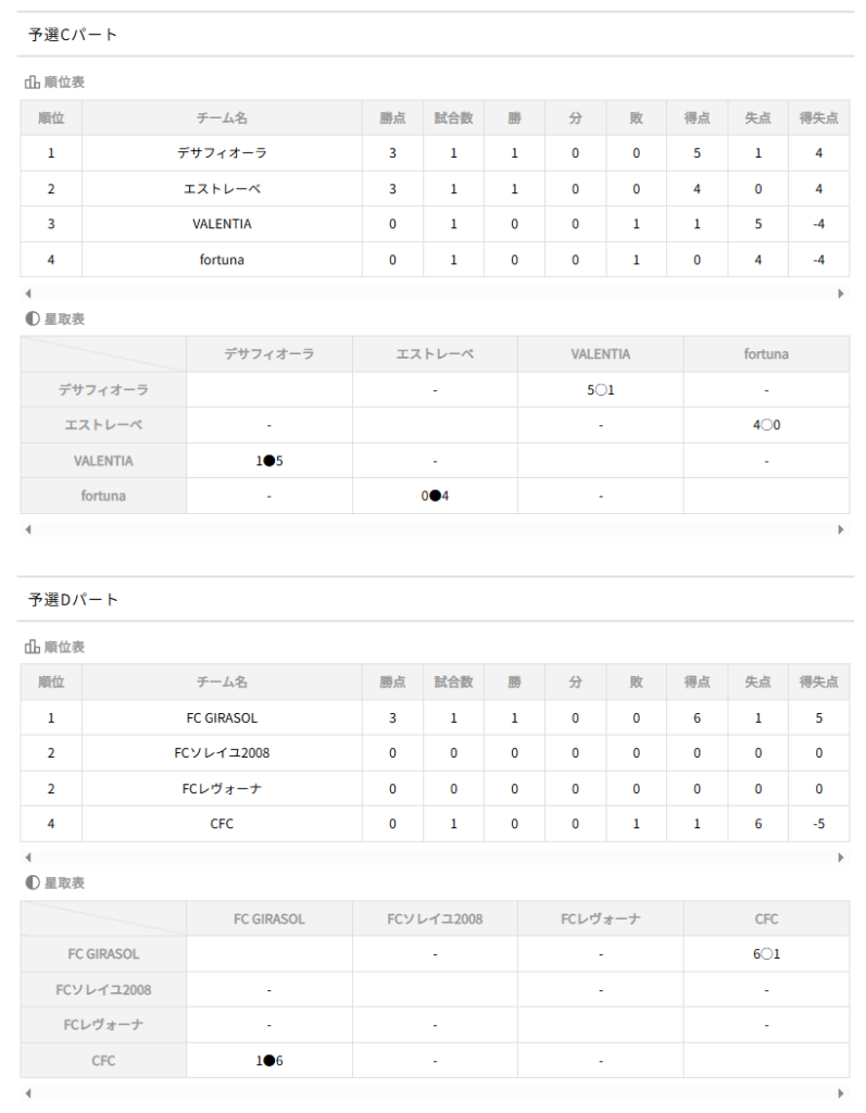 予選リーグ 4/11.12結果判明分掲載!4/18.19.25