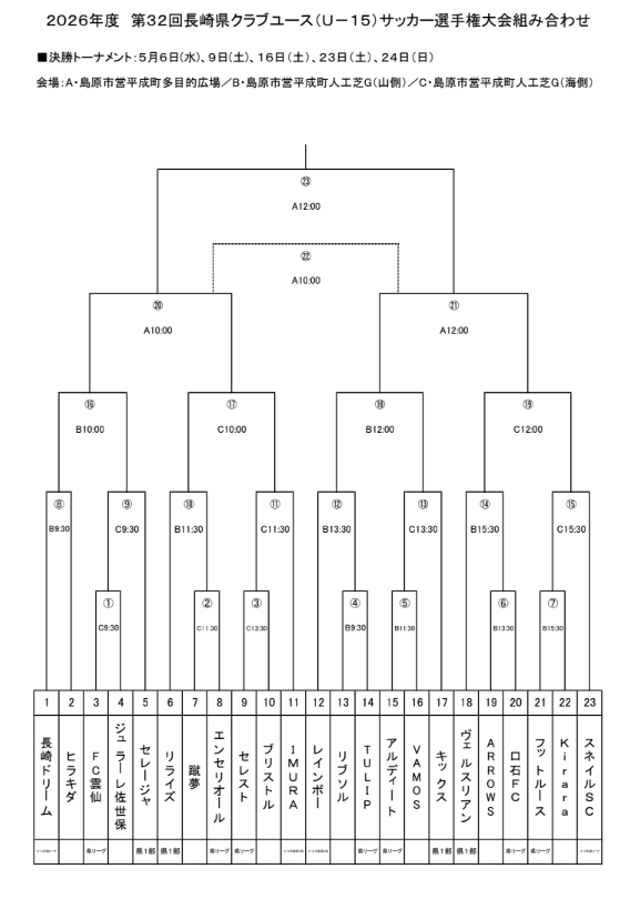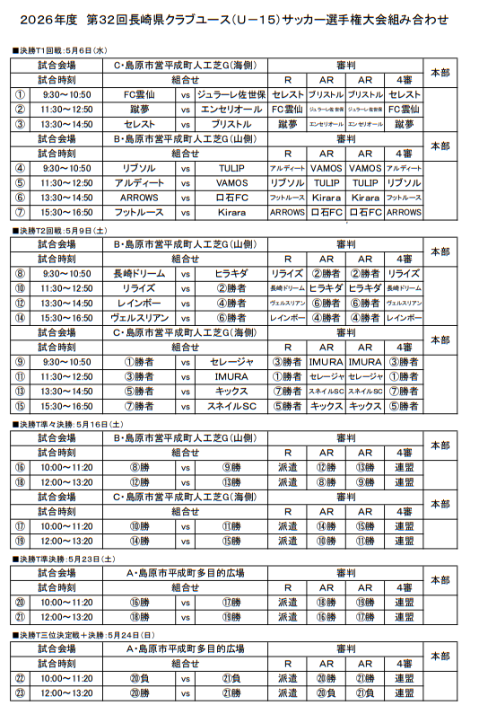 2026年度 第32回長崎県クラブユース(U-15)サッカー選手権大会 5/6~開催!組み合わせ掲載