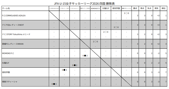JFA U-15女子サッカーリーグ2026 四国