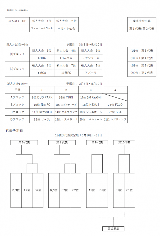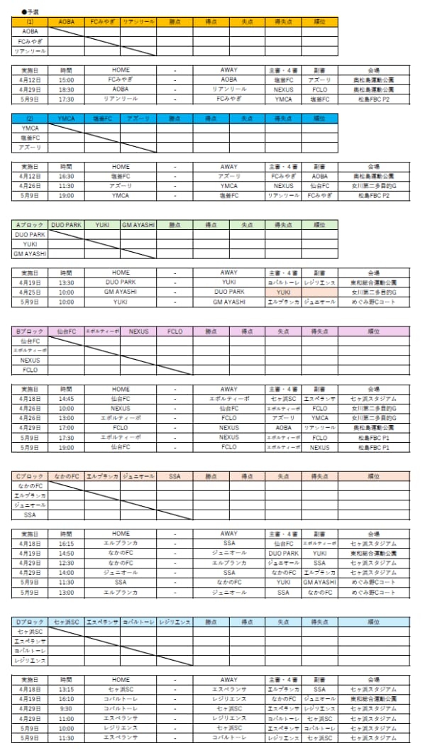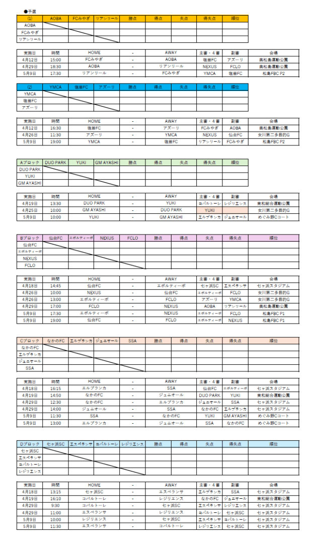 宮城クラブユースの組み合わせ情報ありがとうございます!