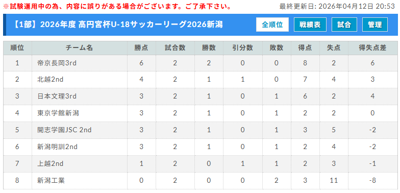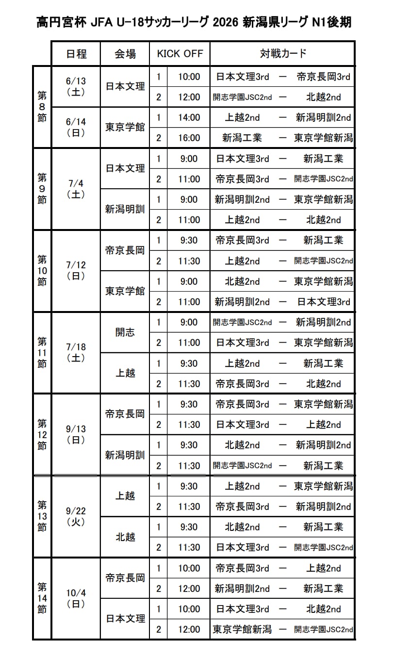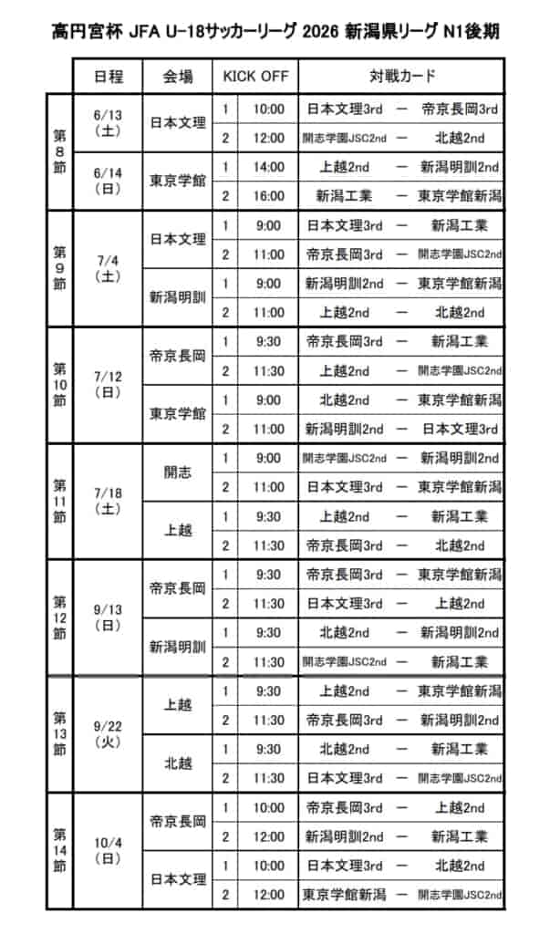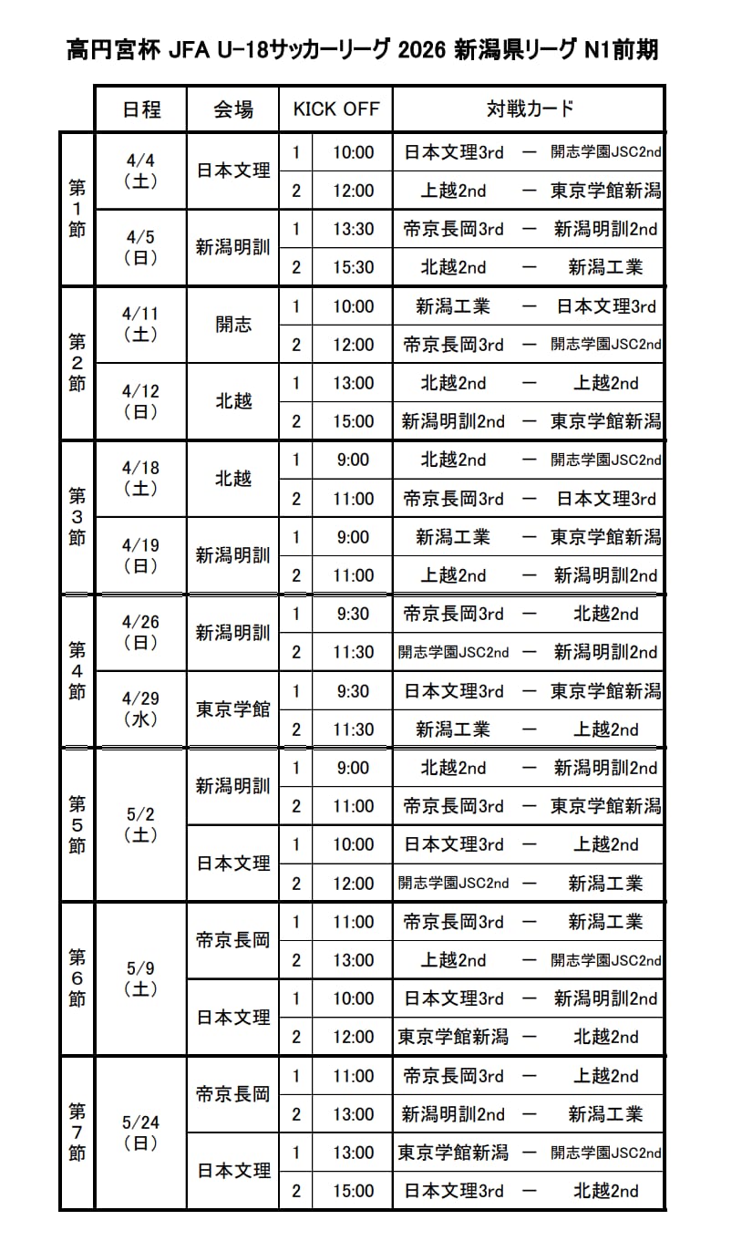 高円宮杯U-18サッカーリーグ2026新潟