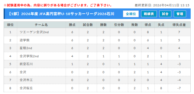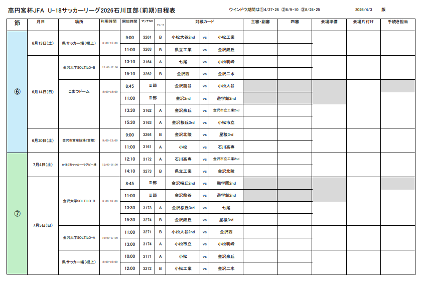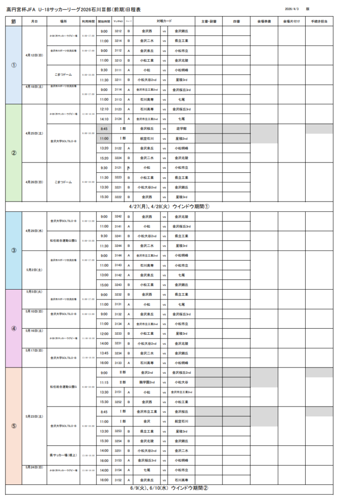 JFA高円宮杯U-18サッカーリーグ2026石川