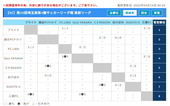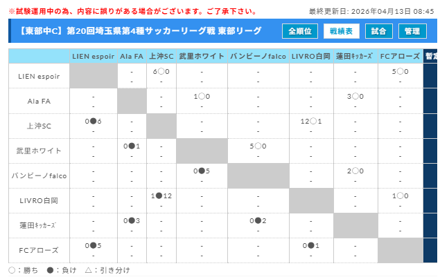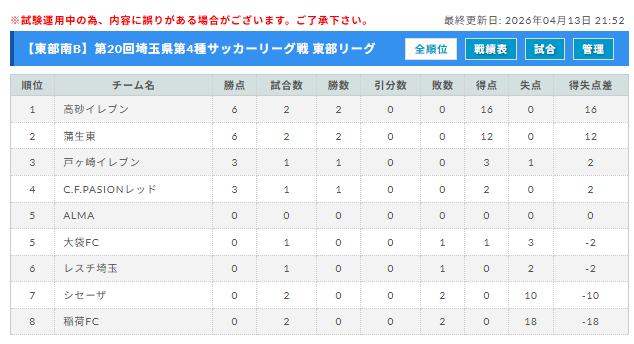 2026年度 第20回埼玉県第4種サッカーリーグ戦 東部リーグ