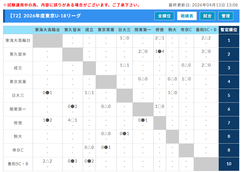 参照サイト:高円宮杯 JFA U-18 サッカーリーグ 東京 公式サイト