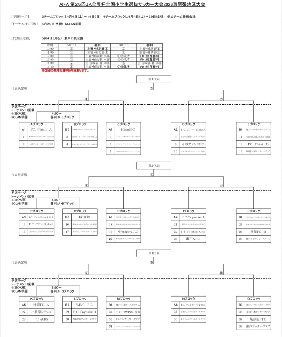 2026年度 第25回 JA全農杯 全国小学生選抜サッカー大会 愛知 東尾張地区大会