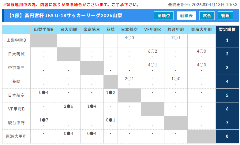 高円宮杯 JFA U-18サッカーリーグ2026山梨