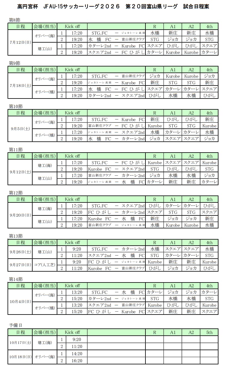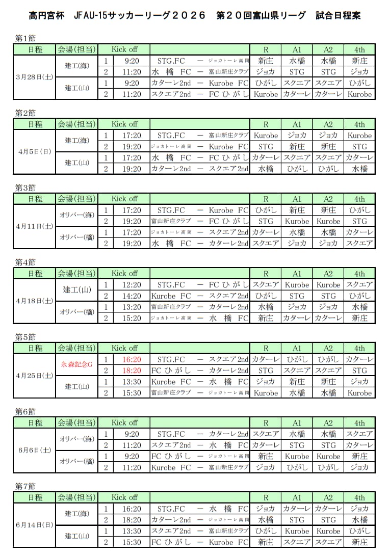 高円宮杯 JFA U-15サッカーリーグ2026 第20回富山県リーグ