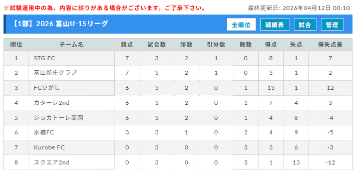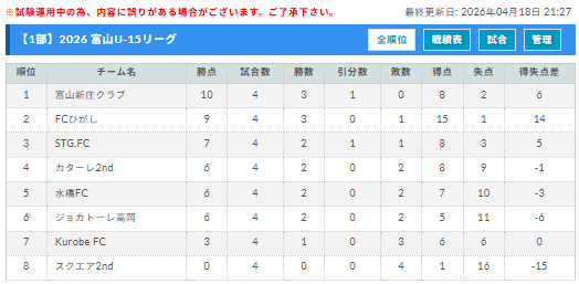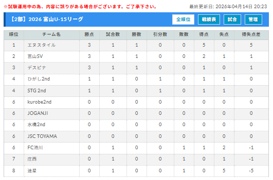 2部リーグ 4/12結果更新 次回4/19