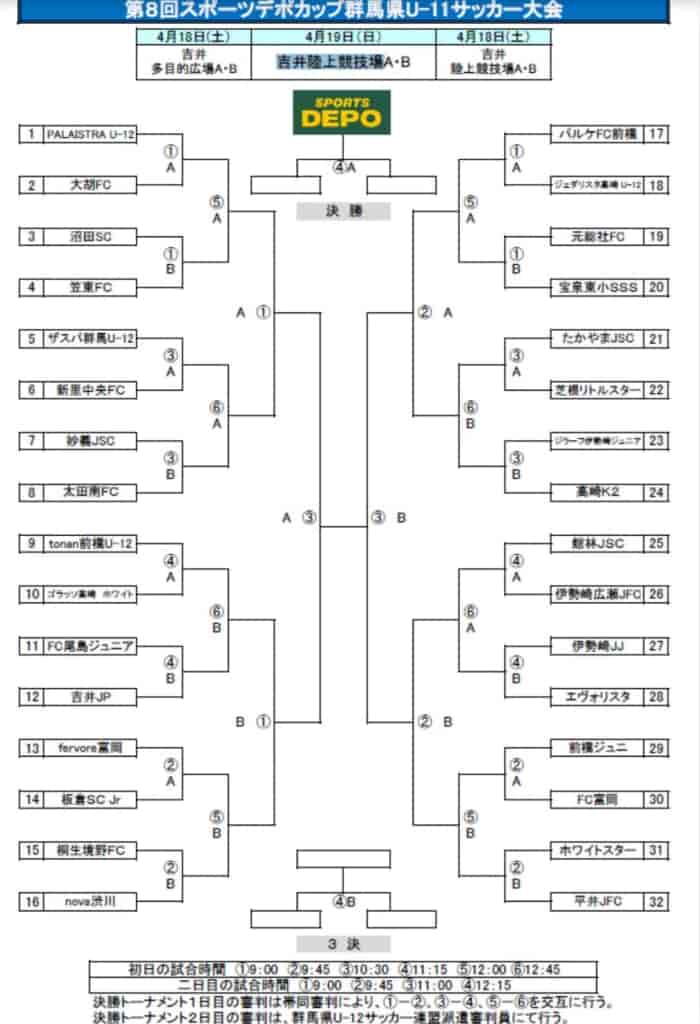 2026年度 第8回スポーツデポカップ群馬県U-11サッカー大会 組合せ掲載!4/18,19開催