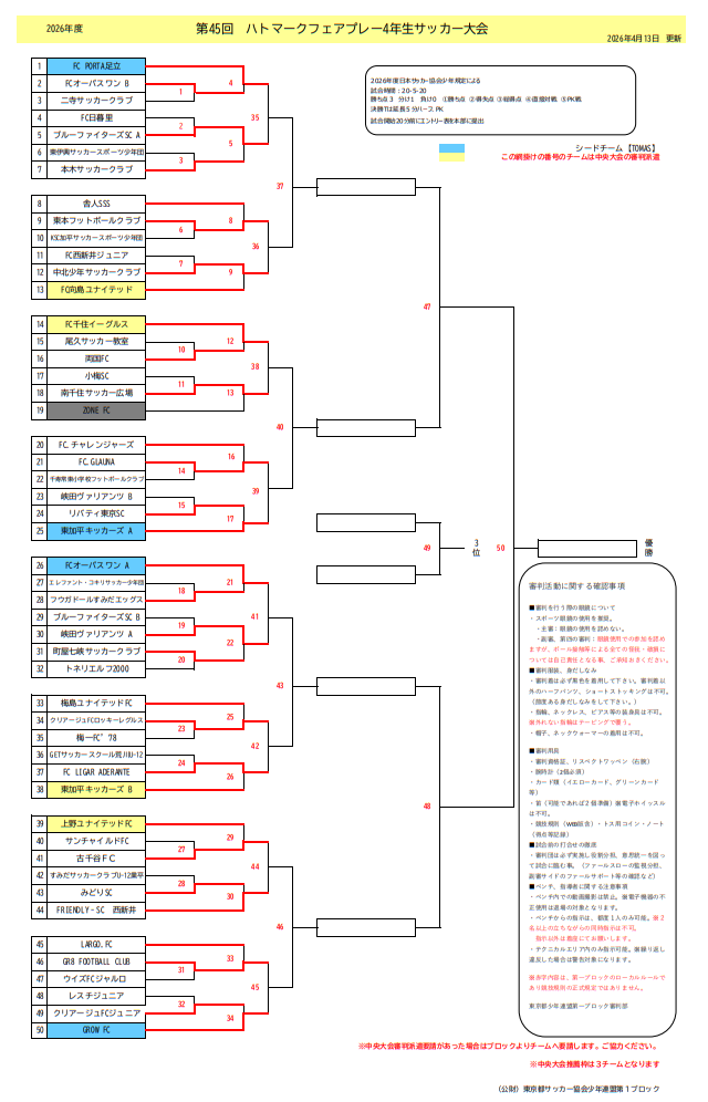 2026年度 ハトマークフェアプレーカップ 第45回東京都4年生大会 1ブロック
