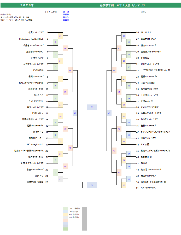 第1シード:前年の区民スポーツ大会「3年すぎのこ大会」のベスト4(松沢、バディB、MIP/A、三宿 A)