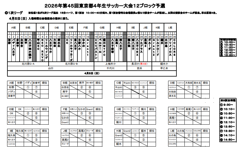 2026年度 ハトマークフェアプレーカップ 第45回東京都4年生大会 12ブロック