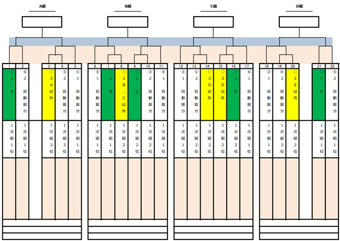 ・シードチームが抽選を行う(①シード→⑥シードの順に抽選を行う)。