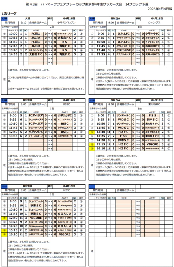 2026年度 ハトマークフェアプレーカップ 第45回東京都4年生大会 14ブロック