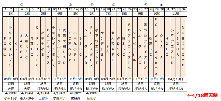 ・不参加: けやきSC、久米川小FC、化成小SC VIGORE
