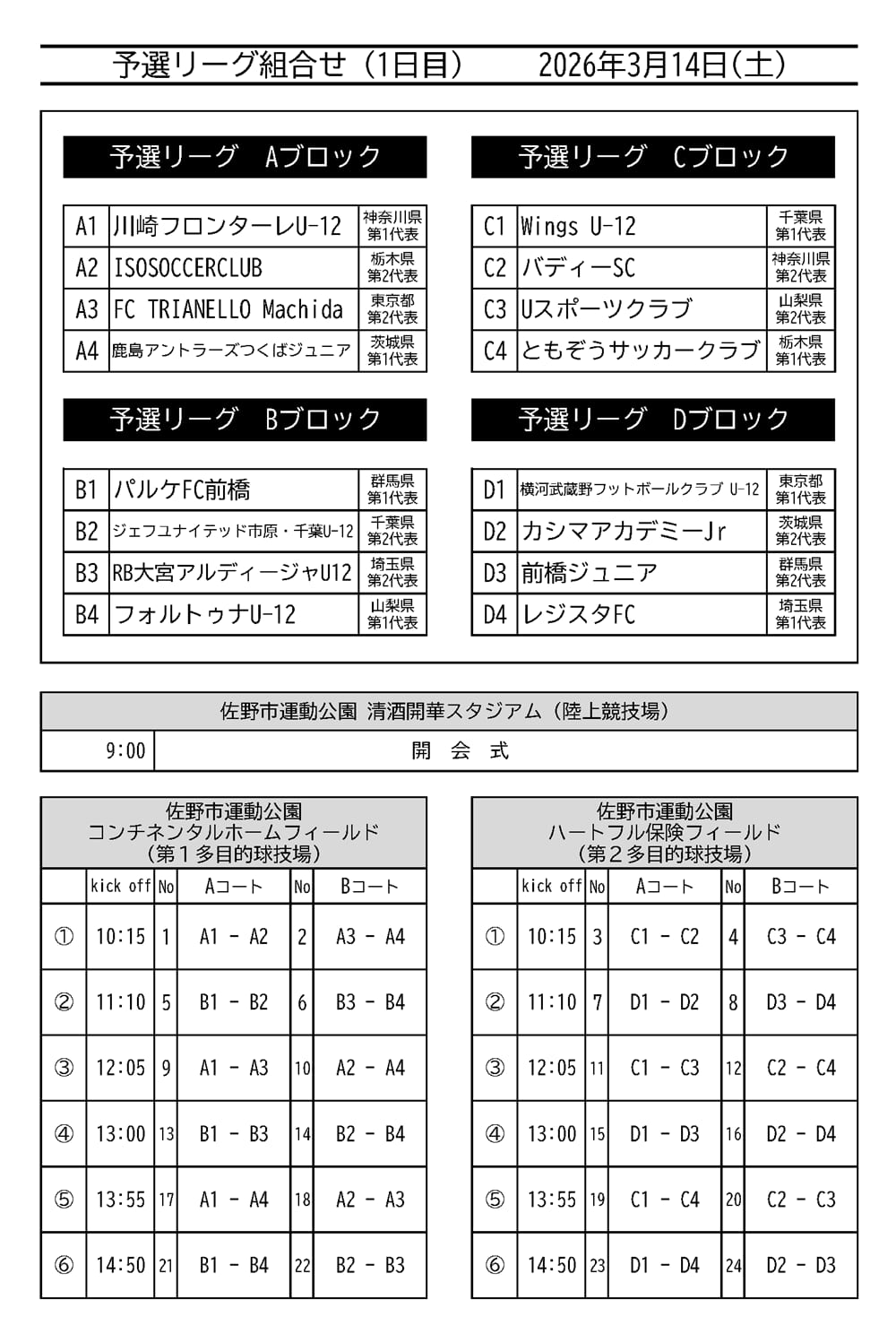 3月14日(土)組合せ