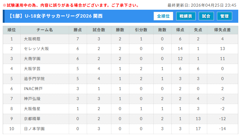 2ndリーグ 4/18更新 次戦4/26