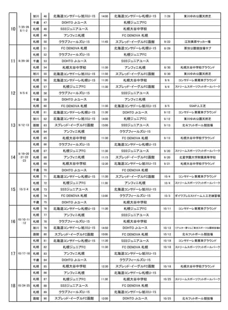 北海道コンサドーレ札幌、札幌ジュニア FC、SSS ジュニアユース、アンフィニ札幌、クラブフィールズ、北海道コンサドーレ旭川 、DOHTO Jr ユース、札幌大谷中学校、スプレッド・イーグル FC 函館、FC DENOVA 札幌