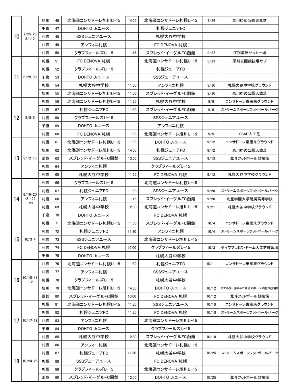 U-15 リーグと紐付いた 1 部 2 部構成とし、9⑻項、10⑵項の通り、北海道カブス