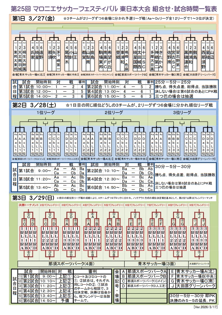 ※3チームが2リーグずつ6会場に分かれ予選リーグ戦(Aa~Dcリーグ全12リーグで1~3位が決定)