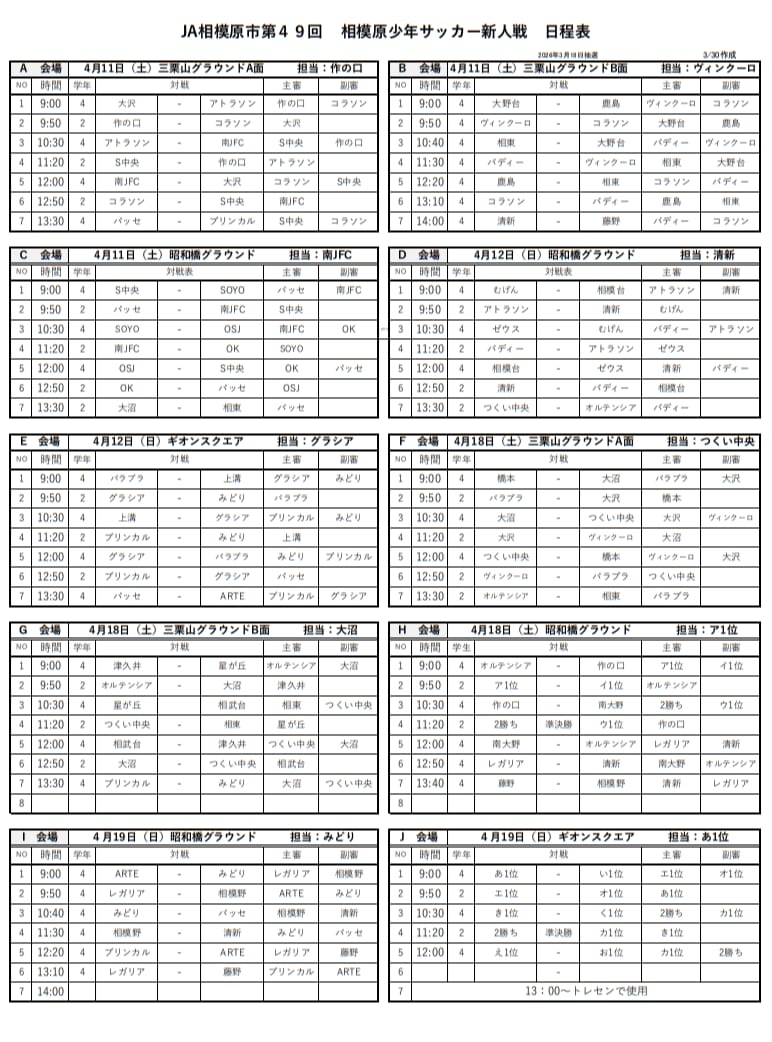 予選リーグ 4月11日(土)・12日(日)・18日(土)・19日(日)