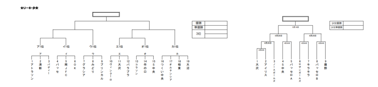 (U-10・U-8)予選リーグ及び決勝トーナメント (U-12・少女)トーナメント方式