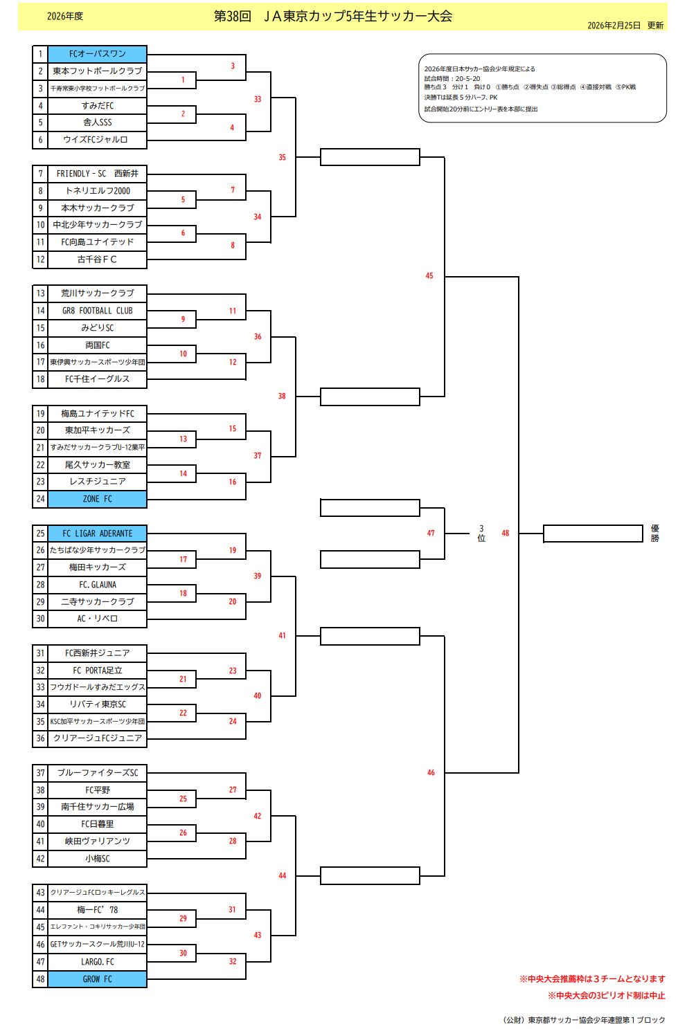 2026年度 JA東京カップ 第38回東京都5年生サッカー大会 第1ブロック