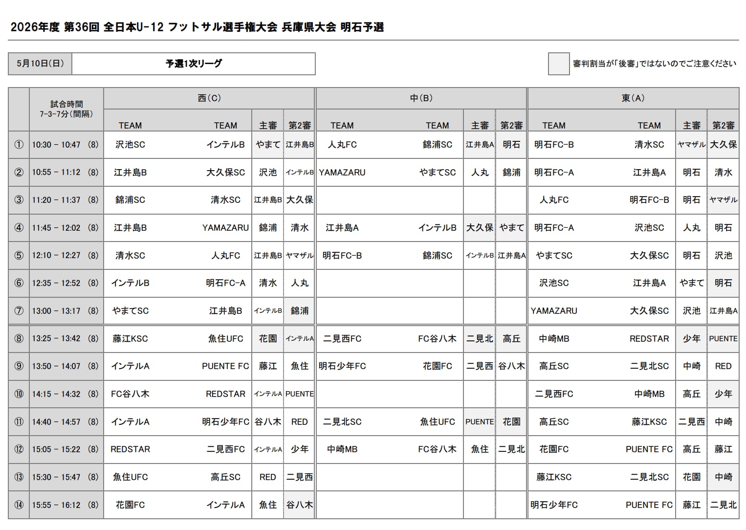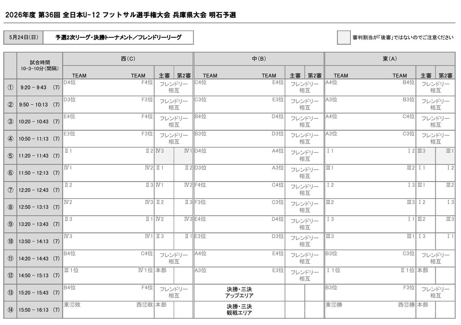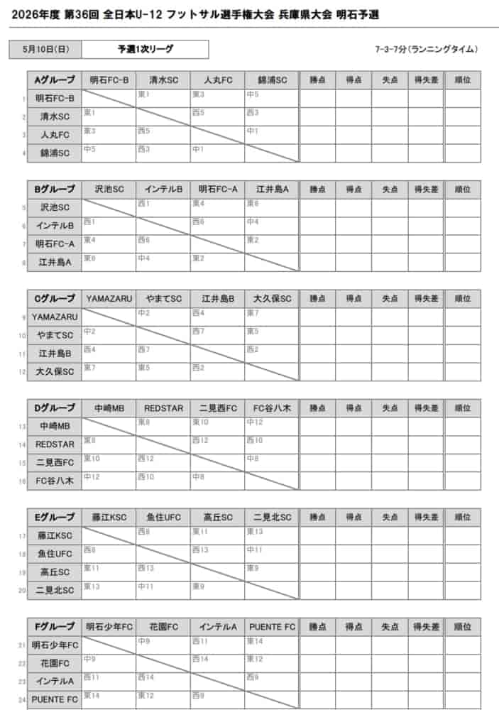 2026年度 JFAバーモントカップ 第36回全日本U-12フットサル選手権大会 兵庫県大会 明石予選