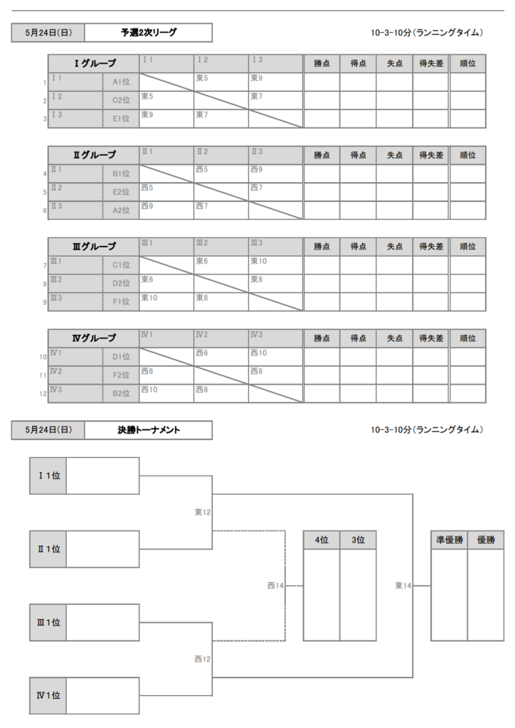 予選2次リーグは予選1次グループ・順位により3チーム×4グループに振り分ける