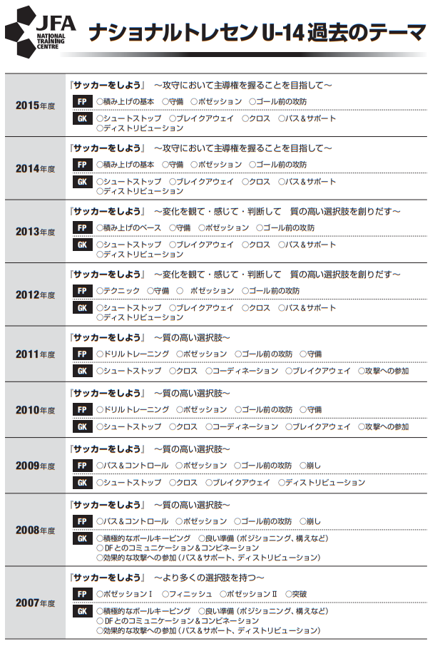 参照サイト:JFA(2016年度ナショナルトレセンU-14)