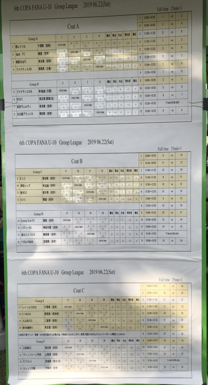 6月22日、23日に群馬県高崎市で開催されました「COPA FANA U-10」の結果がわかりましたのでお知らせします。