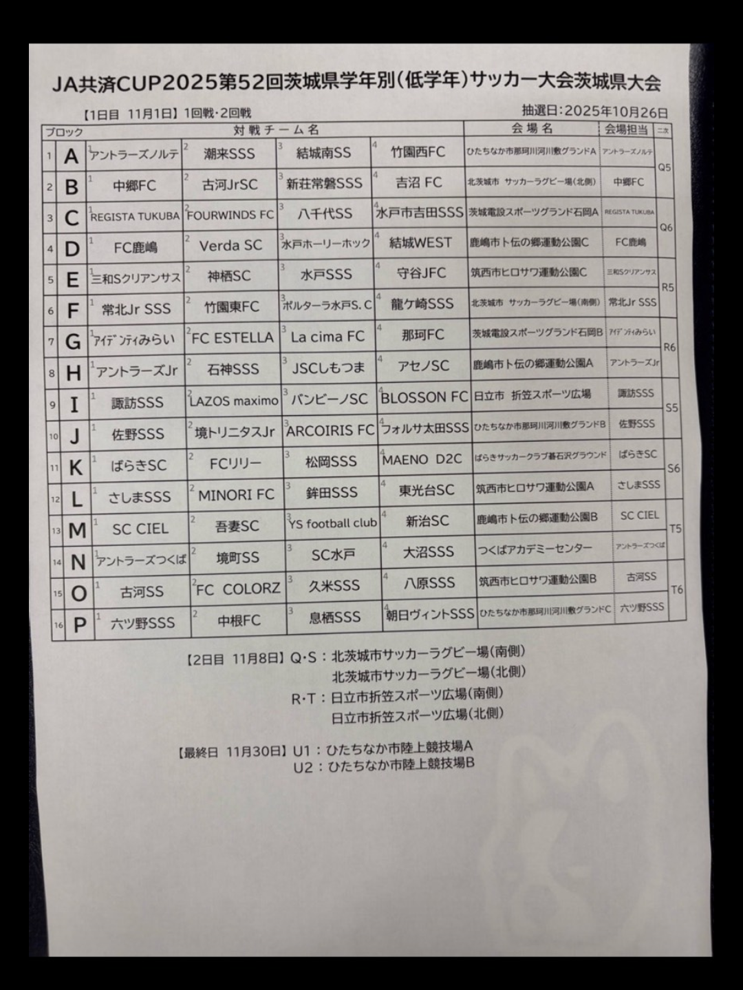JA共済Cup茨城県学年別少年サッカー大会(低学年の部)の組合わせを速報でありがとうございます!