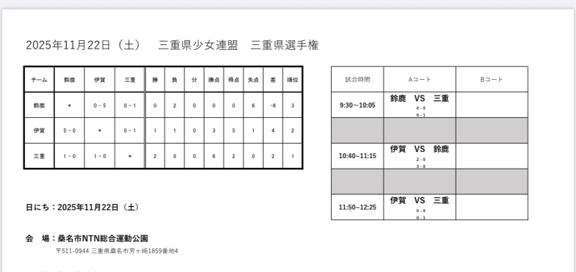 コメントありがとうございます。九州なでしこミヤザキカップ2025の結果画像を送っていただいたのでしょうか?