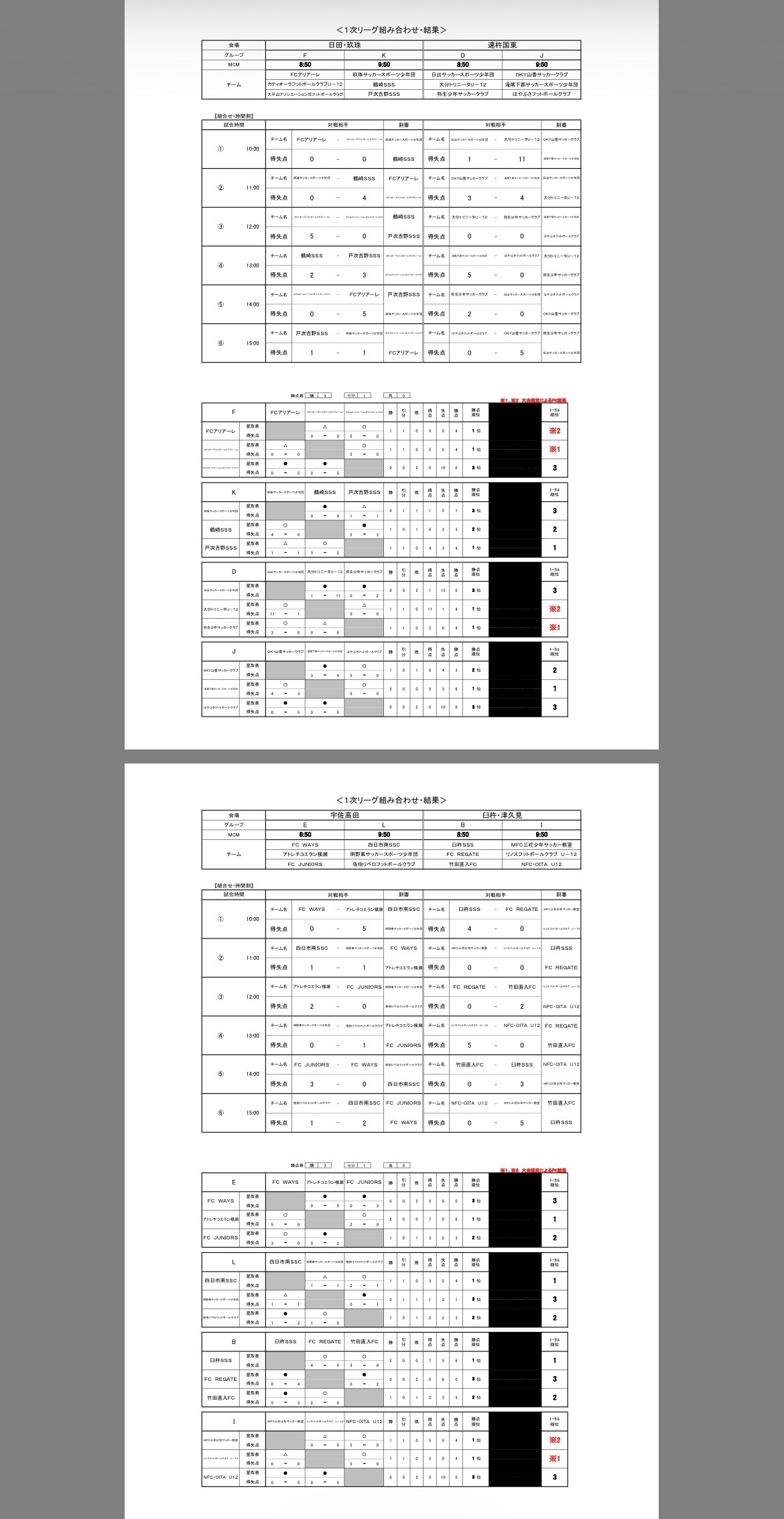 河和JFCさんのHPにUPいただいた結果表を参照し、リーグの最終結果を更新いたしました。