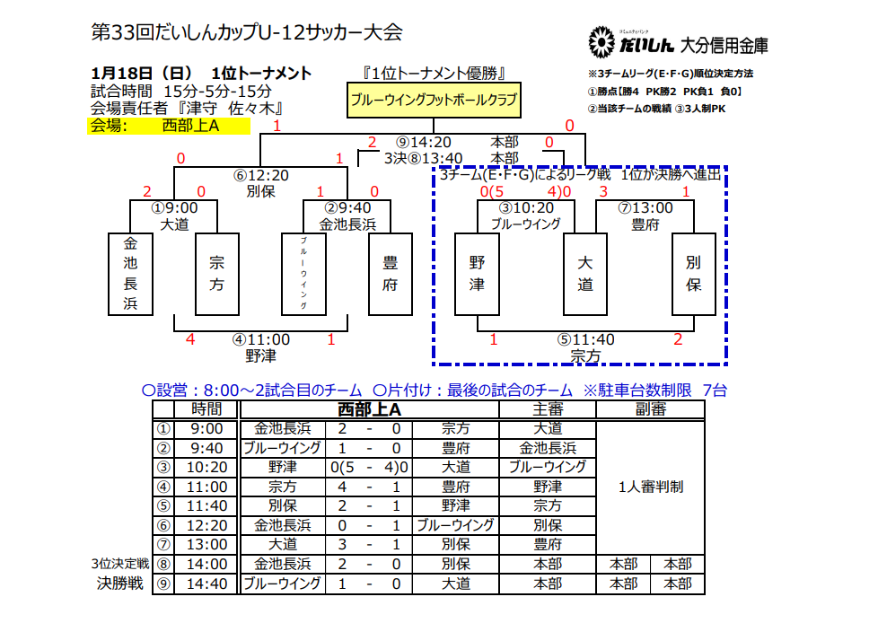 第33回 だいしんカップU-12サッカー大会の結果表を送付いたします。
