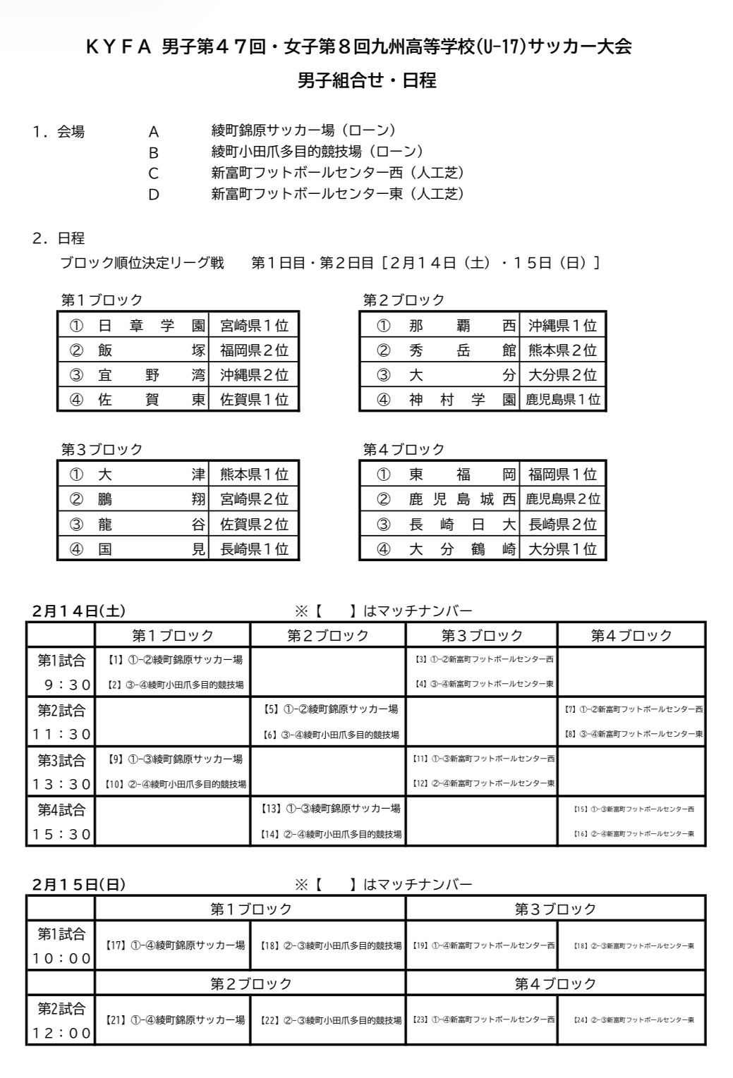 2025年度 KYFA第47回九州高校U-17サッカー大会のブロック順位決定リーグの組合せ情報ありがとうございます!